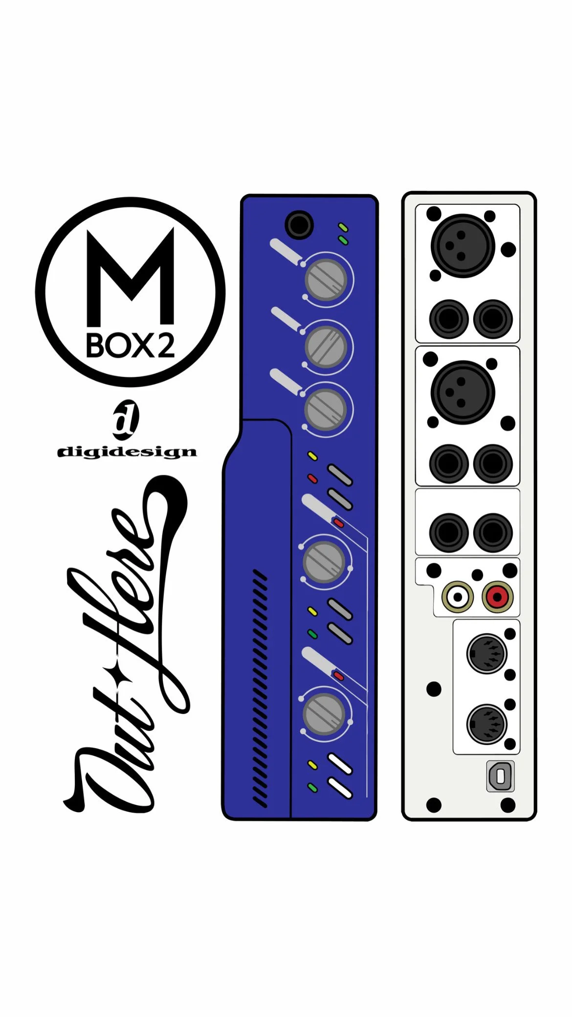 Now, I’m finally retiring the MBox2 and upgrading my studio. To commemorate it, I spent the entire night creating a completely original design — no AI, no clipart. I rebuilt the old Digidesign logos by hand, recreated the MBox2 product mark, and even reworked my own Out Here logo to strip away any shortcut work.